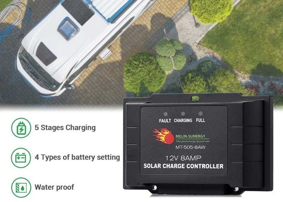 8A 12V 24V Kleine grootte IP65 waterdicht Smart PWM zonneladingscontroleur