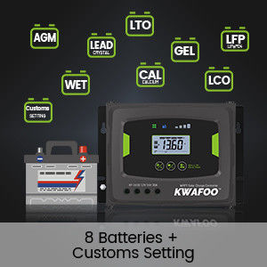 De Melin Sunergy KWAFOO RV MPPT-zonneladingscontroleur, verkrijgbaar in de modelnummers KF2420, KF2430, KF2440 en KF2450, is een product van hoge kwaliteit van oorsprong uit China.Met CE-certificaten, FCC en UKCA, deze controller is geschikt voor verschillende batterijsoorten zoals AGM, GEL, WET, Calcium, Lead Crystal, LTO, LCO, LFP en Customs.