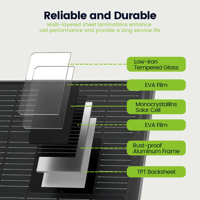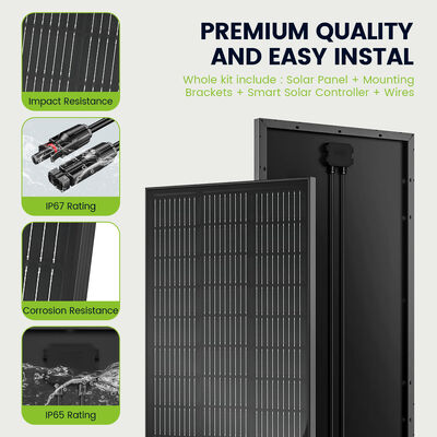 Het 130W volledig zwarte zonnepaneel levert een vol vermogen van 130W onder STC, dit volledig zwarte zonnepaneel combineert sterke energieopwekking met een strakke, uniforme esthetiek. De robuuste 35 mm volledig zwarte frame zorgt voor duurzaamheid tegen buitenelementen en mechanische belasting, terwijl het naadloze zwart-op-zwart ontwerp de visuele aantrekkingskracht verhoogt zonder de prestaties in gevaar te brengen. Ontworpen om een evenwicht te vinden tussen opvallende looks en betrouwbare stroom, is het ideaal voor campers, campingdaken en elke opstelling waar zowel efficiëntie als uiterlijk belangrijk zijn.