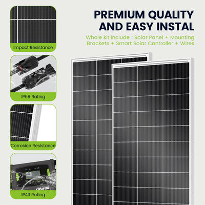 De duurzaamheid wordt verder versterkt door de indrukwekkende IP67 waterbestendigheidsclassificatie van de kit. Deze classificatie garandeert dat de zonnepanelen en bijbehorende apparatuur beschermd zijn tegen het binnendringen van stof en bestand zijn tegen onderdompeling in water tot een bepaalde diepte. Dit maakt het 400W zonne-energiesysteem zeer betrouwbaar in verschillende weersomstandigheden, van hevige regen tot stoffige paden, waardoor u op uw off-grid systeem kunt vertrouwen, ongeacht de omgeving.